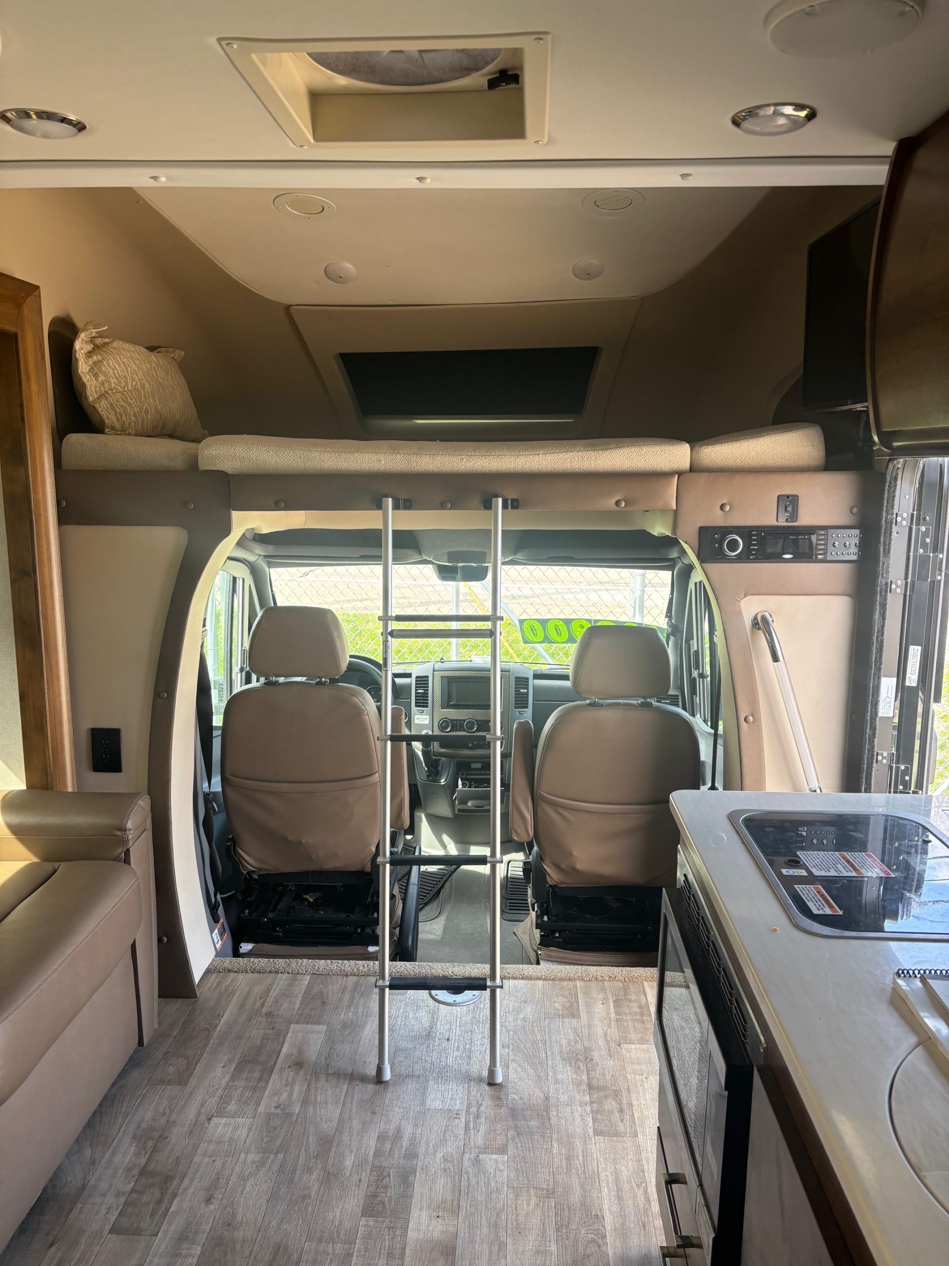 • Custom rear interior layout: Original rear couch and cabinets removed to create a multi-functional space with: (Original couch does come with)