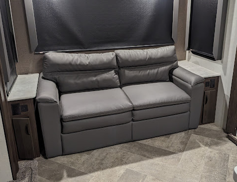 This immaculate fifth wheel features four expansive slide-outs, including dual slides in the living area for an open, inviting feel. The kitchen offers generous counter space and abundant storageβ€”perfect for cooking on the road. Enjoy a roomy master bedroom with ample closet space, providing a true home-away-from-home experience. Ideal for extended stays or full-time living!